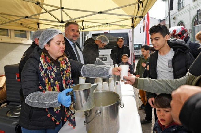 Osmangazi Belediyespor Başkanı Fatih Karayılan ile Osmangazi Belediyesi Meclis Üyesi Özge Kaya tarafından yapılan çorba ikramı, samimi bir atmosferde gerçekleşti.