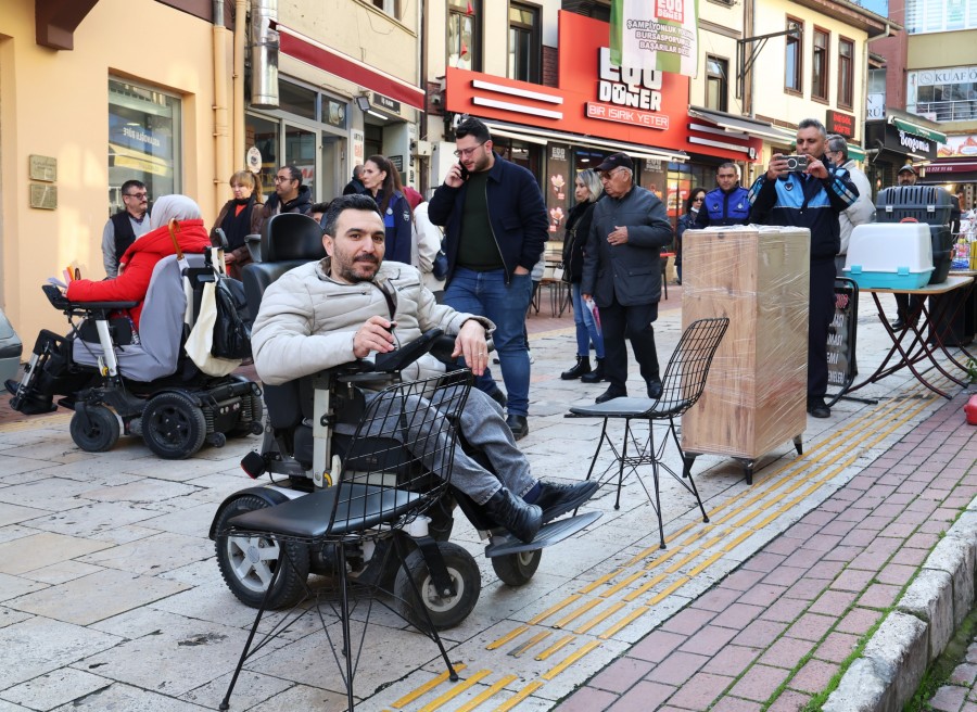 Osmangazi Belediyesi Zabıta Müdürlüğü ile Osmangazi Kent Konseyi Engelliler Meclisi, 3 Aralık Dünya Engelliler Günü'nde engelli vatandaşların sokakta yaşadığı sıkıntılara dikkat çekmek amacıyla ortak bir çalışmaya imza attı. Engelli bireylerle birlikte sahaya çıkan zabıta ekipleri, ilçenin cadde ve sokaklarında kapsamlı bir denetim yaptı. Denetim sırasında engelli bireylerin yaya yollarında rahatça ilerleyebilmesi için zabıta ekipleri onlara eşlik etti. Engelli yollarının masa, sandalye, duba ve araçlar nedeniyle kapatıldığı tespit edilen noktalarda, ilgili işletmelere ve kişilere kabahatler kanununa istinaden idari yaptırım karar tutanakları düzenlendi. Engelli yollarını işgal eden iş yeri sahipleri ile araç sürücülerine bin 406 lira idari para cezası kesildi. Ayrıca, engelli bireyler de zabıta ekipleriyle denetim sırasında yollarını kapatan işletme ve araç sürücülerine yaşadıkları sıkıntıları uygulamalı olarak göstererek, bundan sonra daha duyarlı olmaları konusunda uyarılarda bulundu.