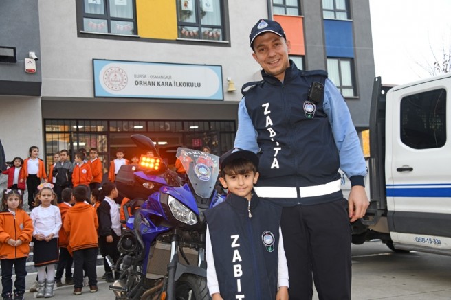 Renkli görüntülere sahne olan eğitimde miniklerin zabıta telsizini kullanarak anons denemesi yapması ise oldukça dikkat çekti. İlk kez telsizle konuşmanın heyecanını yaşayan çocuklar, kısa süreliğine de olsa kendilerini gerçek bir zabıta gibi hissetti. Osmangazi Belediyesi Zabıta Müdürlüğü ekipleri, etkinlik sonunda öğrencilere boyama kitabı hediye etti.
