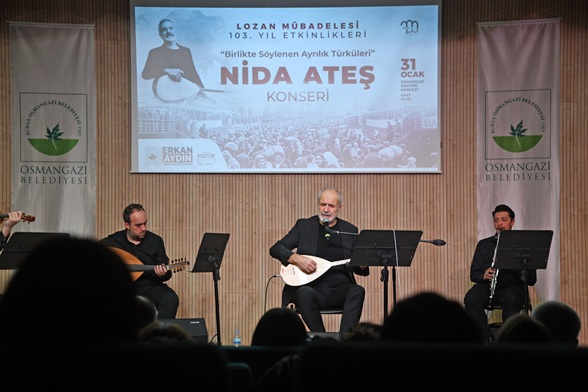 Osmangazi Gösteri Merkezi’nde düzenlenen “Birlikte Söylenen Ayrılık Türküleri” konserine, Osmangazi Belediye Başkan Yardımcısı Mutlu Esendemir’in yanı sıra belediye meclis üyeleri ile çok sayıda sanatsever katıldı. Nida Ateş’in güçlü yorumuyla hayat bulan ‘Çalın Davulları’, ‘Bülbülüm Altın Kafeste’ ile ‘Vardar Ovası’ gibi türküler, mübadele yıllarında yaşanan ayrılıkların ve zorunlu göçlerin bıraktığı derin izleri yeniden hatırlattı. Konseri yoğun ilgiyle takip eden dinleyiciler ise kimi zaman hüzünlenirken kimi zaman da ortak geçmişin birleştirici gücüyle duygu dolu anlar yaşadı.