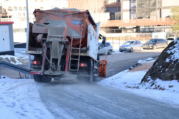Dağ yamaçlarında yer alan mahallelerin yanı sıra şehir içi trafiğin yoğun olduğu noktalarda tuzlama çalışmalarını gerçekleştiren ekipler, buzlanma riskine karşı önlemler alarak ulaşımı güvenli hale getirdi.