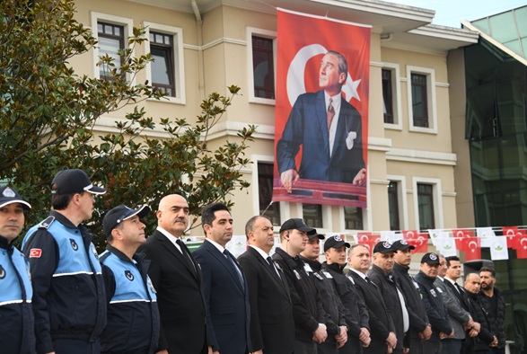 Belediye başkan yardımcıları, meclis üyeleri, birim müdürleri, belediye personeli ve vatandaşların katılımıyla gerçekleştirilen törende, bir dakikalık saygı duruşunun ardından İstiklal Marşı hep bir ağızdan coşkuyla okundu.