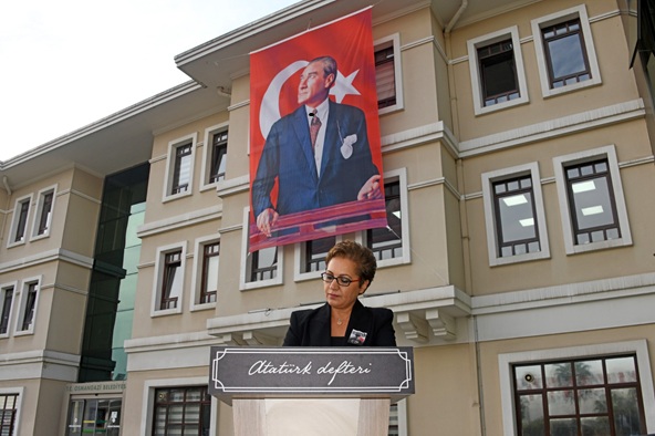 Tören sonunda ise Atatürk defteri köşesinde katılımcılar, Atatürk’e olan sevgi, minnet ve özlemlerini dile getiren satırlar yazdı.
