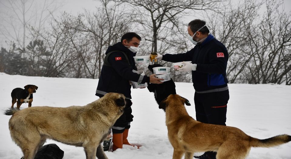 Osmangazi Belediye Çevre Koruma ve Kontrol Müdürlüğü ekipleri, kar yağışının devam ettiği Uludağ’daki sahipsiz köpeklerin aç kalmamaları için yol kenarlarına kuru ve yaş mama bıraktı. İlk kar tanesinin düştüğü günden itibaren düzenli olarak oteller bölgesine kadar çıkan belediye ekipleri, yol boyunca gördükleri can dostları elleriyle besledi. Ekipler ayrıca, Osmangazi Belediyesi’nin sahipsiz köpeklerin kış aylarını tok geçirmeleri için beş farklı noktaya yerleştirdiği beslenme odaklarının üzerindeki karları da temizledikten sonra içerisine kilolarca kuru mama koydu. Yetkililer, sahipsiz köpeklerin aç kalmalarını önlemek için yapılan mama dağıtımının, kar yerden kalkana devam edeceğini söyledi.