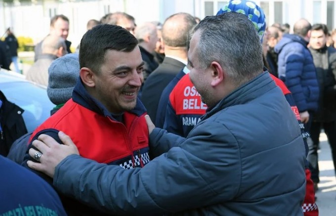 Deprem bölgesinde olduğu için Osmangazi Belediye Başkanı Mustafa Dündar’ın yer almadığı karşılamada, AK Parti Osmangazi İlçe Başkanı Ufuk Cömez, belediye başkan yardımcıları, birim amirleri ve belediye personeli, depremin kahramanlarını bağrına bastı. Mesai arkadaşları ve aileleriyle kucaklaşarak duygusal anlar yaşayan arama kurtarma ekibine Osmangazi Belediye Başkan Yardımcısı Cem Kürşad Hasanoğlu, afet bölgesindeki üstün gayretlerinden dolayı teşekkür ederek çiçek verdi.