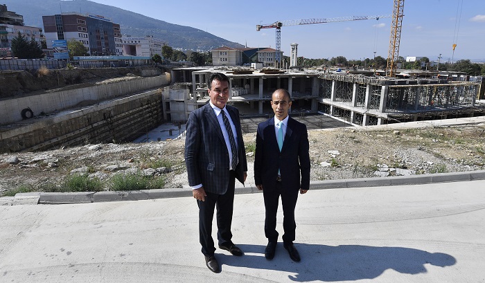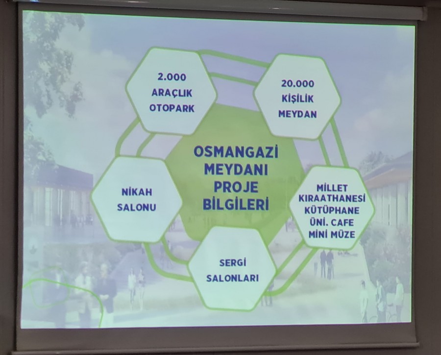 Bursa’nın merkezinde toplam 40 bin metrekare alan üzerine inşa edilen Osmangazi Meydanı’ndaki çalışmalar yoğun bir şekilde devam ediyor. 2000 araç kapasiteli otoparkı, nikâh salonu, millet kıraathanesi, sosyal ve kültürel etkinlik alanları ve 20 bin kişilik meydanı ile Bursa’nın yeni çekim merkezi olacak meydanı, şehir dinamikleri yakından inceliyor. Bursa’da hali hazırda devam eden en büyük kamu yatırımı olan Osmangazi Meydanı şantiyesini Bursa İnternet Gazetecileri Derneği Üyeleri ziyaret etti.