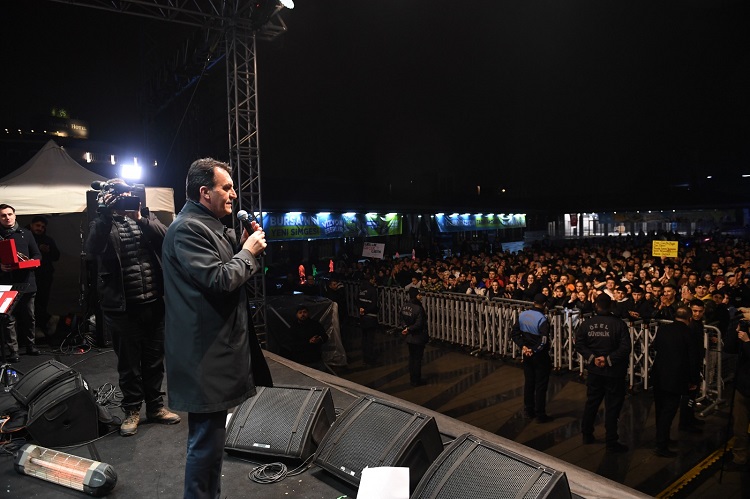Sahneye çıkarak konsere gelen Bursalıları selamlayan Osmangazi Belediye Başkanı Mustafa Dündar, soğuk ve yağışlı havaya rağmen dev meydanı dolduran Bursalılara teşekkür etti. Osmangazi Meydanı’nda düzenleyecekleri etkinliklerle coşkuyu daha arttıracaklarını ifade eden Başkan Dündar, “Gençler, meydan sizin. Bu meydanı da bu etkinlikleri de sizler için yapıyoruz. Sizlerle beraber Osmangazi’de tarih yazdık; yeniden tarih yazmaya da devam edeceğiz” dedi.