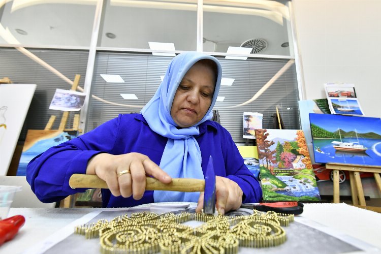 Osmangazi Belediyesi’nin Halk Eğitim Merkezi işbirliğiyle ücretsiz olarak düzenlediği OSMEK Kursları, meslek sahibi olmayan vatandaşları çalışma hayatına kazandırıyor. Demirtaş Kültür Merkezi’nde verilen filografi eğitimlerinde kursiyerler; çivi çakma, tel tutma, tel örme ve desen çıkarmanın inceliklerini öğreniyor. Toplam 24 öğrencinin olduğu kursta, üniversite öğrencilerinden ev hanımlarına, emeklilerden çalışana kadar her yaş grubundan kursiyer bulunuyor. Bu sanatın tüm inceliklerini kavrayan kadınlar, sabırla örülen tellerden şaheserler ortaya çıkartıyor.