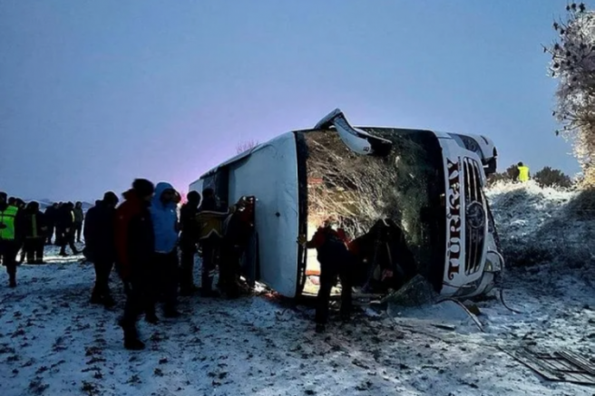 Yan yatarak durabilen yolcu otobüsünde ilk belirlemelere göre 6 kişi öldü, 3'ü ağır 33 kişi de yaralandı.