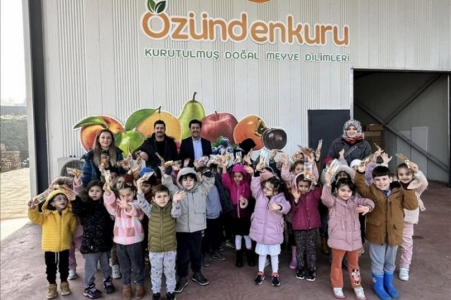 Özündenkuru meyve kurutma tesisini gezen öğrenciler meyve kurularının tadına da baktı. Özündenkuru'yu deneyimleyen öğrenciler hem tesise hem lezzete tam not verdi.