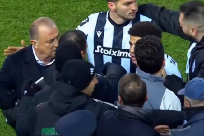 PAOK, 43. dakikada Kiril Despodov ile 1-0 öne geçerken gol sonrası Panathinaikos teknik heyeti ile PAOK teknik heyeti ve oyuncular arasından tartışma çıktı.