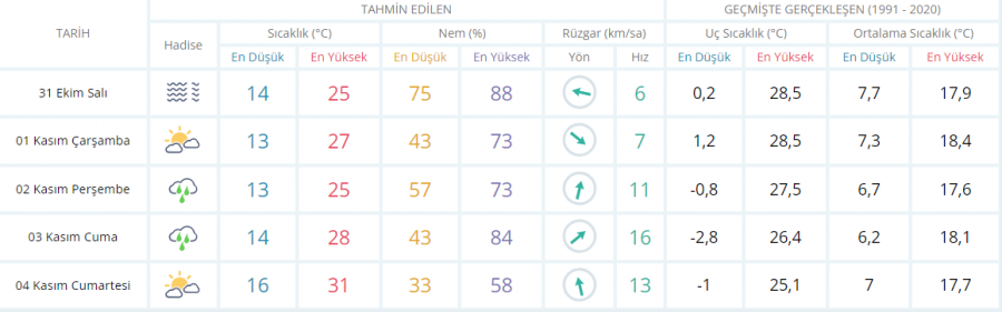 Parçalı ve az bulutlu geçeceği tahmin ediliyor. Gece ve sabah saatlerinde iç kesimlerinde yer yer pus ve sis olayı bekleniyor.