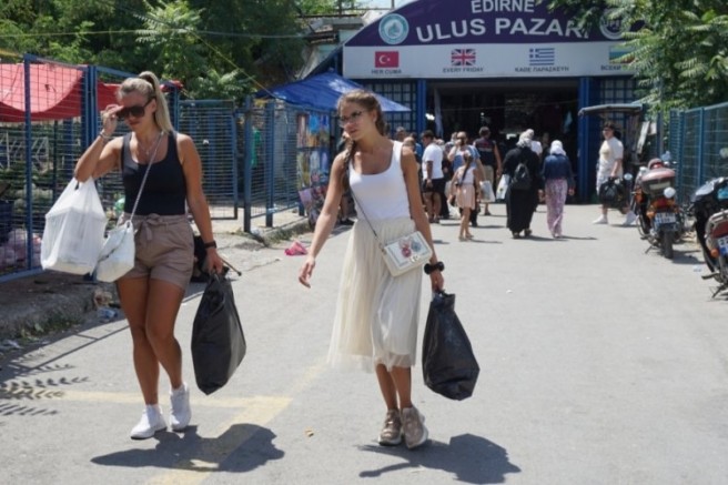 Gıdadan giyime, ayakkabıdan çantaya, ev eşyasından, temizlik ürünlerine kadar birçok ihtiyacını Edirne'den karşılayan Bulgar turistler, bu hafta Ulus Pazarı'nda yoğunluk oluşturdu. Aldıklarını bavullara ve çantalara yerleştiren Bulgar turistler, kent merkezinden de alışveriş yaptı.