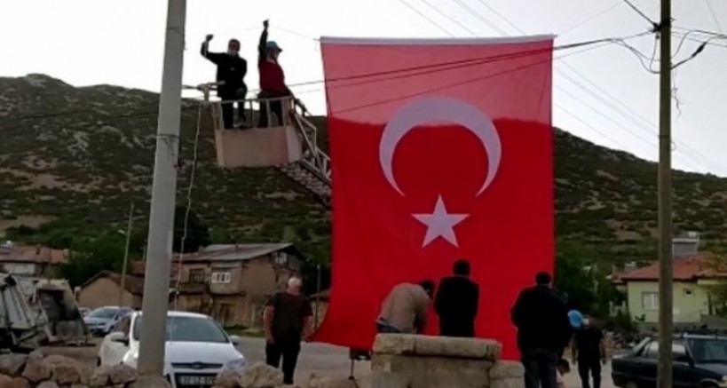 Şehidin evinin bulunduğu sokağa ve evine Türk bayrakları asıldı.