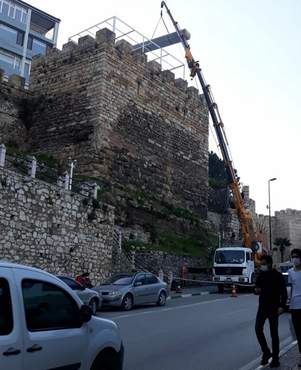 Geçici de olsa tarihi surların üzerine o sundurma, camekan stüdyo (adı ne olarak adlandırılırsa) yapılmamalıdır.