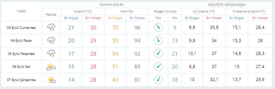 5 GÜNLÜK HAVA DURUMU