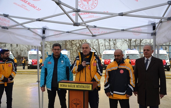 İl Sağlık Müdürlüğü envanterinde bulunan obez ambulansı, 4 sedyeli ambulans, kar paletli ambulans ve yenidoğan ambulansı çeşitleriyle verilen hizmetin kalitesinin ve hızının arttığına dikkat çeken Çetin, “Bugün 1.466 personel ile verdiğimiz hizmetin kalitesini arttırmak için bize destek olan bakanlığımıza çok müteşekkiriz. Bakanlığımızın desteği ile Bursalı hemşerilerimize kaliteli hizmet vermek için çalışmaya devam edeceğiz.” diye konuştu.