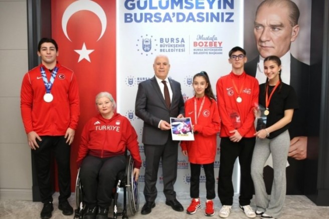 Ziyaretten duyduğu memnuniyeti diye getiren Başkan Mustafa Bozbey, “Bursa’nın yetiştirdiği sporcularımızla ülkemizi ve Bursa’mızı ulusal ve uluslararası alanda en iyi şekilde temsil ettikleri için gurur duyuyoruz. Paris 2024 Paralimpik Oyunları’ndan atıcılık 2’ncisi Aysel Özgan, U20 Dünya Güreş 3’üncüsü Ahmet Yağan, Taekwondo Avrupa Şampiyonu Elif Mutlu ve Dans Çiftler Dünya Şampiyonu Ali Efe Aydın ve Beren Aydın hepimizin göğsünü kabarttı. Başarılarını artırarak sürdüreceklerdir. Çocukların ve gençlerin spora başlamalarına ve başarı elde etmede örnek olacaklarına da inanıyorum. Tüm sporcularımızı kutluyorum” dedi.