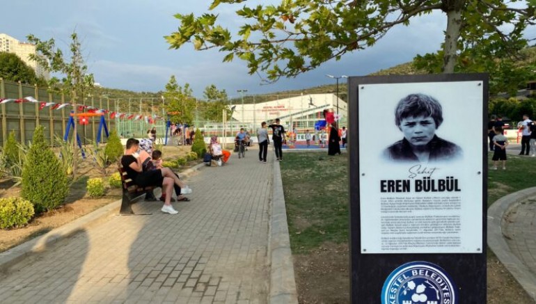 “Bugün açılışını yapmak için bir araya geldiğimiz parkımıza kahraman şehidimiz Eren Bülbül evladımızın ismini verdik. Şehidimizin ismi kıyamete kadar yaşayacak. Böylesine güzel bir duyguya vesile olabildiysek ne mutlu bizlere. Belediye meclisimizde aldığımız karar ile parkımızın ismini Eren Bülbül olarak tescilledik. Tüm meclis üyesi arkadaşlarımıza ayrı ayrı teşekkürlerimi sunuyorum. Tüm partilerimizin katkısıyla bu ismi yaşatıyoruz. Bu bize mahallemize kazandırmış olduğumuz bir parktan çok daha öte gönül rahatlığı veriyor. Bu parka gelen, bu parkın önünden geçen herkes duvarda yazan ‘İyi ki varsın Eren’ yazısı görecek ve şehidimizi dualarla anacak. Şehidimize bir kez daha Allah’tan rahmet diliyorum’’