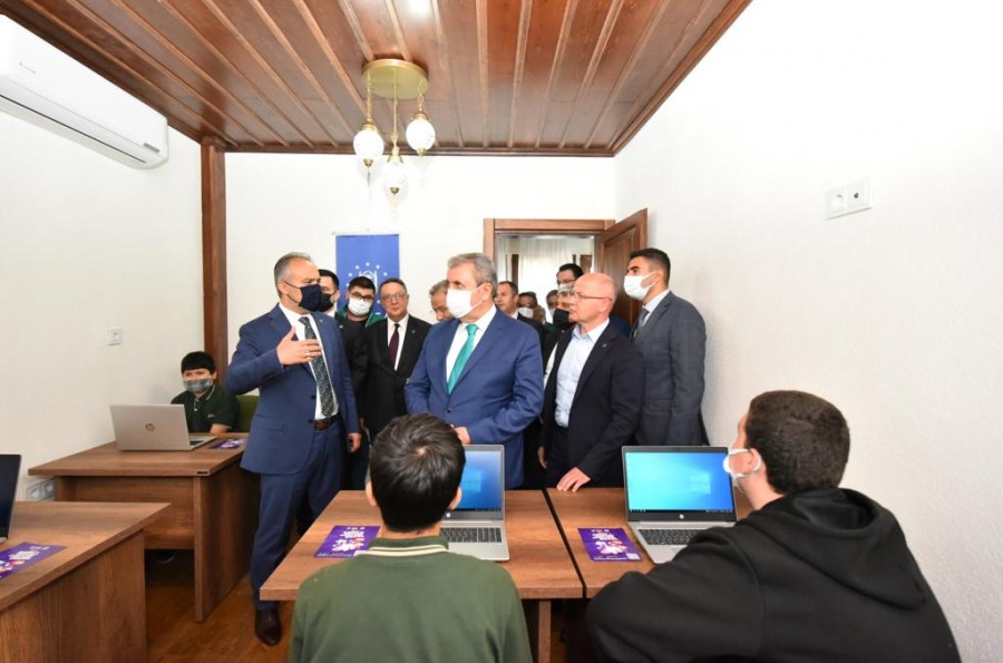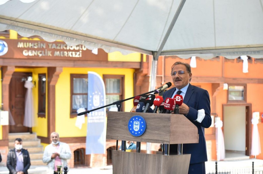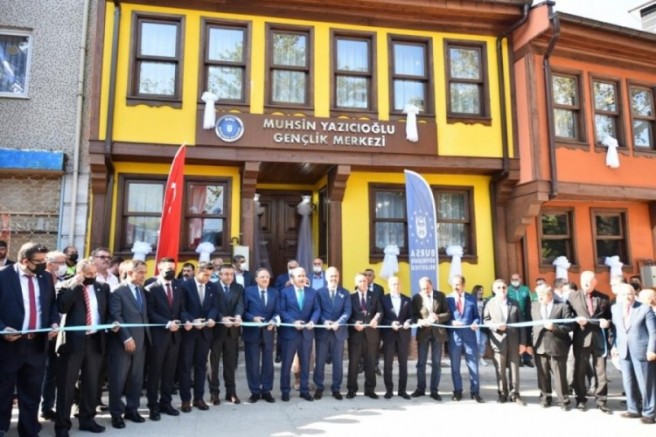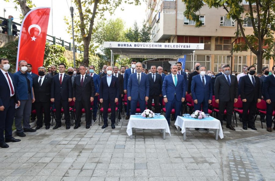 Törende konuşan Büyükşehir Belediye Başkanı Alinur Aktaş, açılışın hayırlı olmasını temenni etti. Bursa'nın 8500 yıllık tarihi, kültürel birikimi, doğal güzellikleri, bereketli toprakları ile Türkiye'nin en müstesna köşelerinden birisi olduğunu söyleyen Başkan Alinur Aktaş, farklı medeniyetlere ev sahipliği yapan Bursa'nın bunun izlerini de yaşadığını belirtti. Her anlamda cazibe merkezi olan Bursa'nın TÜRKSOY'un 38. dönem toplantısında '2022 Türk Dünyası Kültür Başkenti' ilan edildiğini hatırlatan Başkan Aktaş, "Gerçekleştireceğimiz proje ve faaliyetlerimizle Türk Dünyası'nın gönül bağlarının güçlendirilmesi, kültürel mirasın yaşatılması, siyasi ve iktisadi birliğin geliştirilmesi hususunda Türk Dünyası'na katkı sunmaya devam edeceğiz. Dava adamı Muhsin Yazıcıoğlu hayatta olsaydı bu durumdan çok memnun kalırdı. Bursa'da Muhsin Yazıcıoğlu'nun ismini verdiğimiz Gençlik Merkezi ve Mahalle Gönüllüleri Konağı'mızın da açılışını yapıyoruz. Bölge daha önceden bakımsızdı. Önceki dönem belediye başkanımız Recep Altepe'ye teşekkür ediyorum. Kamulaştırmayla alakalı süreci halletti. Göreve geldikten sonra restorasyon çalışmalarını başlattık. İlk günkü halini almış oldu. Burası çok kıymetli çalışmalara ev sahipliği yapacak" dedi.