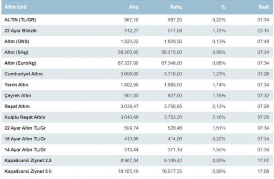 Altın fiyatları bugün son haftalardaki yükselişiyle birlikte yakından takip ediliyor. Geçtiğimiz haftalarda dolar kurundaki çıkışlar ons altının yükselişini ve iç piyasadaki altın türlerinin yönünü yukarı çevirdi. Böylece uzun zamandır düşüş grafiğinde yer alan altın yatırımcısına son haftalarda kazandırdı. Altın dün kapanışını yükselişle gerçekleştirdi. Peki, bugün hangi altın türü ne kadar oldu? İşte son dakika altın fiyatları..