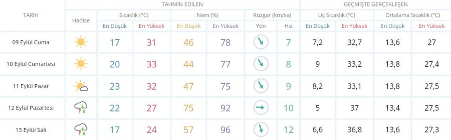 5 GÜNLÜK HAVA TAHMİNİ