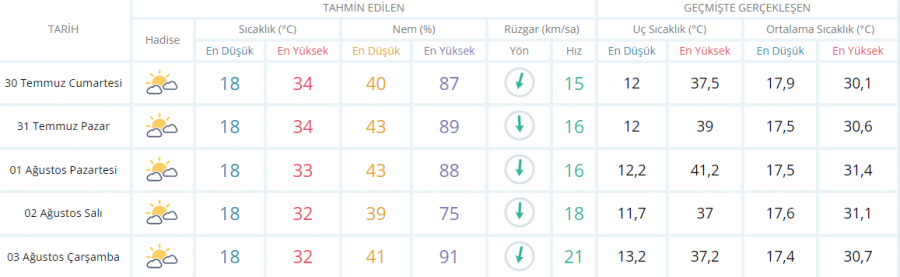BURSA İÇİN 5 GÜNLÜK TAHMİN