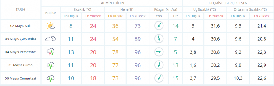 5 GÜNLÜK TAHMİNİ