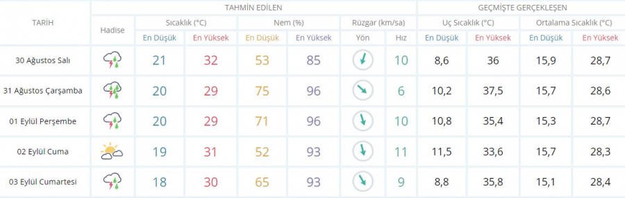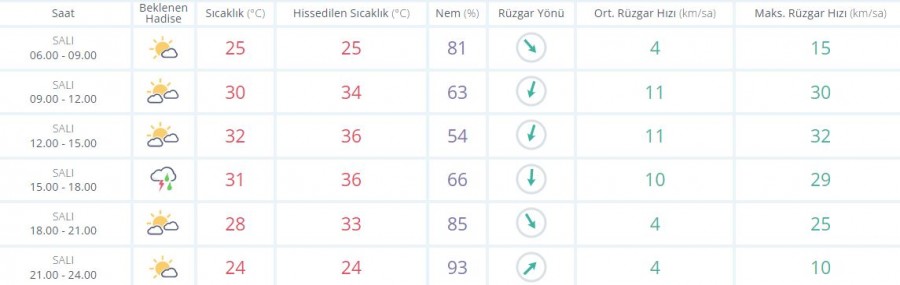 Meteoroloji Genel Müdürlüğü tarafından yapılan son değerlendirmelere göre: Ülkemizin kuzey, iç ve batı kesimlerinin parçalı, yer yer çok bulutlu, Marmara'nın doğusu, Kuzey Ege'nin iç kesimleri, Samsun, Ordu, Giresun, Trabzon ve Rize'nin iç kesimleri ile Eskişehir, Boku ve Karabük çevrelerinin kısa süreli ve yerel sağanak ve gök gürültülü sağanak yağışlı, diğer yerlerin az bulutlu ve açık geçeceği tahmin ediliyor.