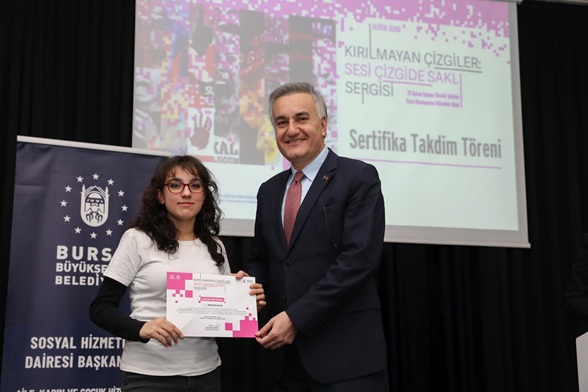 Bursa Büyükşehir Belediyesi’nin ‘Fark Et, Oyna, Dönüştür’ teması ile gençler için düzenlenen atölye çalışmalarını dijital dünya ile buluşturduğu ‘Kırılmayan Çizgiler’ temalı dijital sergi, 25 Kasım Kadına Yönelik Şiddete Karşı Uluslararası Mücadele Günü kapsamında Bursalılarla buluşturulmuştu.