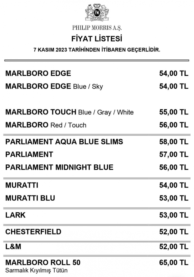 Philip Morris grubundan yapılan açıklamada 7 Kasım 2023 (Bugün) itibarıyla geçerli olmak üzere ürünlerine 5 TL zam yaptığını duyurdu.