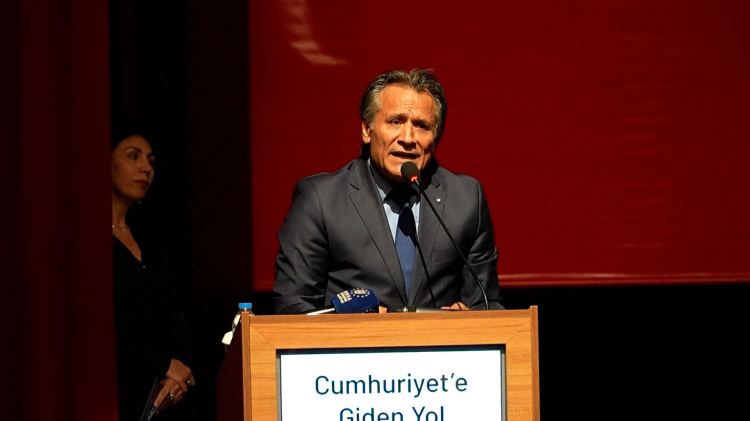 Cumhuriyet Bayramı’nın 101. yıl dönümü, Bursa’da zengin içerikli programlarla kutlanıyor. Bursa Büyükşehir Belediyesi ve Bursa Kent Konseyi tarafından düzenlenen ‘Cumhuriyet’e Giden Yol’ temalı söyleşide, ünlü şair, yazar, araştırmacı ve tiyatro oyuncusu Sunay Akın sahne aldı. Merinos Atatürk Kongre ve Kültür Merkezi’ndeki programa, Büyükşehir Belediyesi Genel Sekreter Yardımcısı Mehmet Emin Direkçi, Bursa Kent Konseyi Başkanı Prof. Dr. Ertuğrul Aksoy, Bursa Kent Konseyi Genel Sekreteri Elvan Atay Özkan, daire başkanları ve şube müdürleri katıldı. Bursalıların da yoğun ilgi gösterdiği söyleşide Cumhuriyet’in anlamını ve değerlerini kendine has üslubuyla anlatan Sunay Akın, dinleyenleri zamanda yolculuğa çıkardı. Yaklaşık 2 saat süren programda tarihsel ve toplumsal olayları anlatan Sunay Akın, Cumhuriyet’in önemine dair kesitler sundu. Atatürk’ün ‘Türkiye Cumhuriyeti’nin temeli kültürdür’ sözünü hatırlatan Akın, kadınların toplumsal hayattaki yeri ve öneminin Cumhuriyet ile birlikte daha da belirginleştiğinin altını çizdi.
