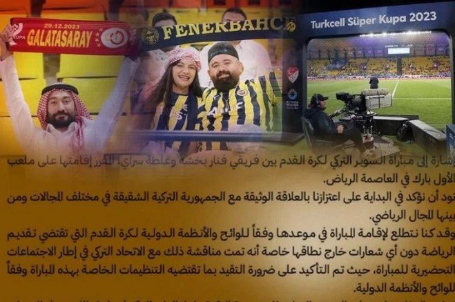 Galatasaray ile Fenerbahçe arasında Suudi Arabistan'ın başkenti Riyad'da oynanması planlanan 2023 Turkcell Süper Kupa maçı öncesi Suudi yetkililerin kabul edilemez talepleri ve ülkemizin kutsal değerlerine ve sembollerine yapılan saygısızlık sonrası iki takımımızın da maça çıkmayı reddetmesi nedeniyle ertelenirken, konuyla alakalı organizatör şirketten açıklama geldi.
