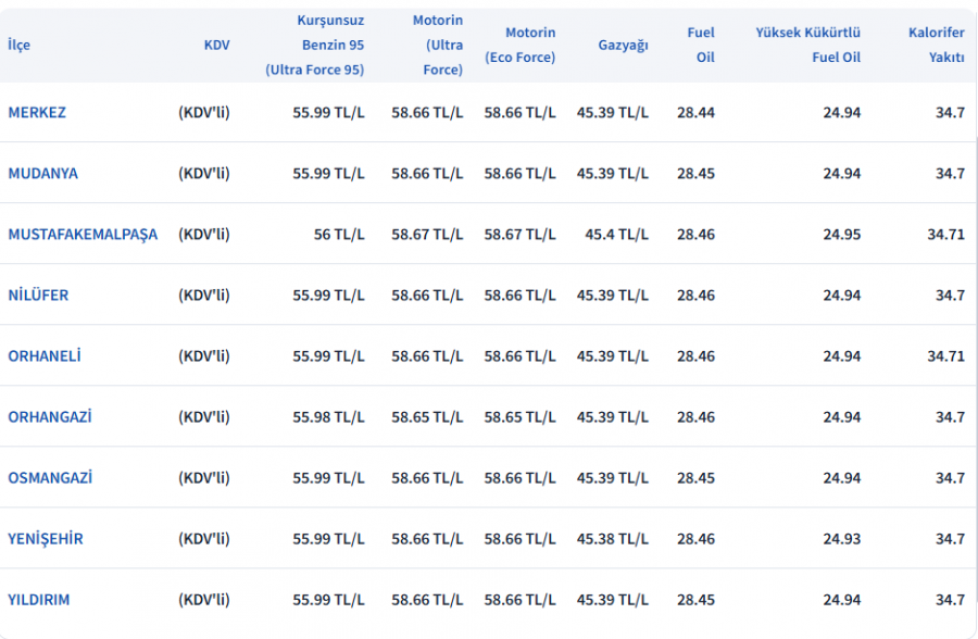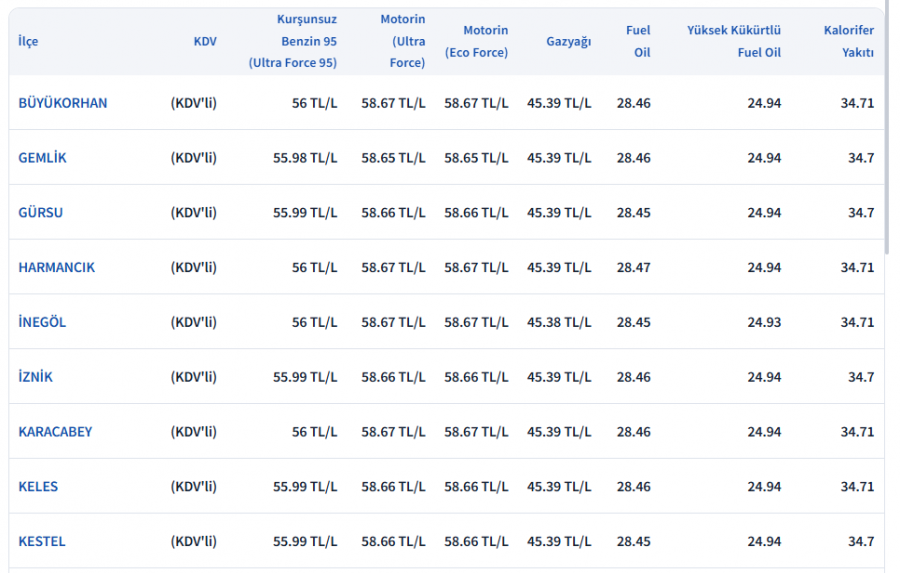 İstanbul Anadolu yakası akaryakıt fiyatları