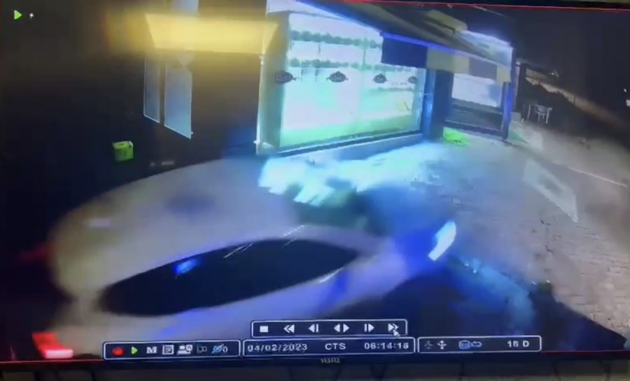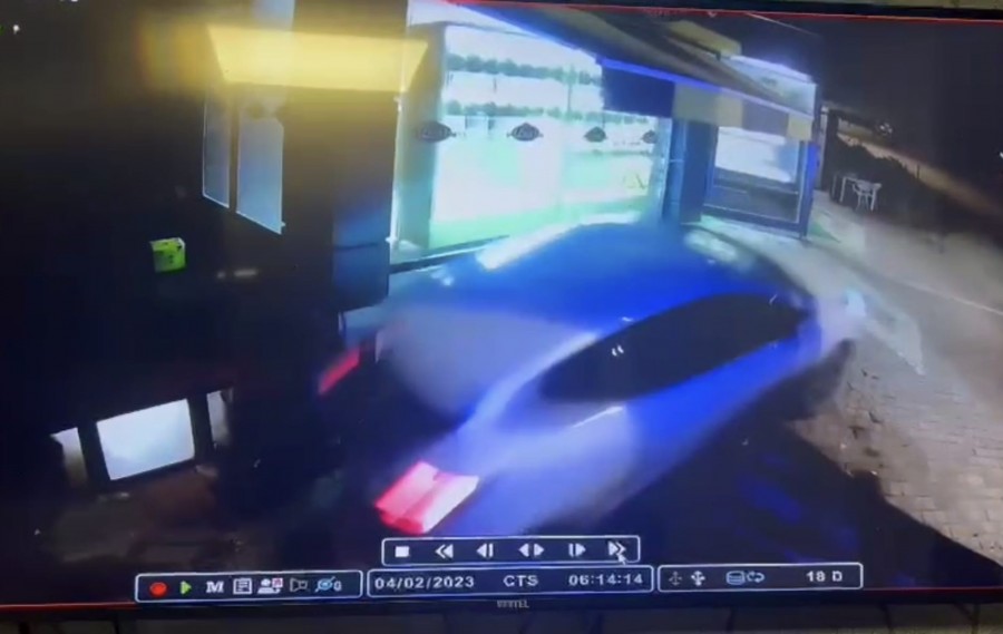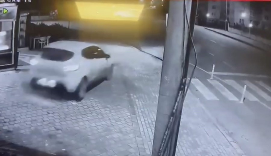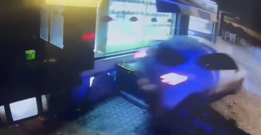 Bursa'nın İnegöl ilçesinde meydana gelen kazada, sürücüsü direksiyon başında uyuyakalan otomobil, geri manevra yaparak fırın işletmesinin bahçesine düştü. Kaza anı bir işyerinin güvenlik kameralarına saniye saniye yansıdı.