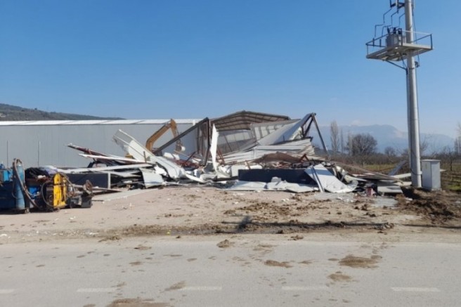 Yapı Kontrol Müdürlüğü ekipleri tarafından İsmetiye Mahallesi'nde tarım arazisi üzerine kaçak olarak yapıldığı belirlenen depo, iş makinesi ile yıkılarak kullanılmaz hale getirildi.