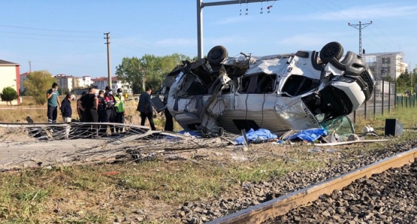 Tekirdağ'ın Ergene ilçesinde yük treni hemzemin geçitte bir minibüse çarptı.