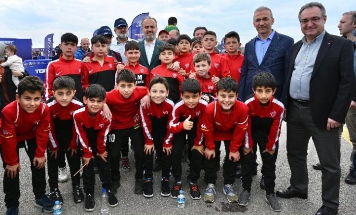 TEKNOFEST’in artık sadece bir Türkiye markası değil, dünya markası haline geldiğini belirten Bakan Mustafa Varank, “300 binden fazla takım,1 milyon yarışmacı başvurusunu yaptı. İşte finalleri gerçekleştiriyoruz. Tabii Bursa olarak da birkaç senedir insansız hava araçları yarışmalarına ev sahipliği yapıyoruz. Elimizden gelenin en güzelini Türkiye'nin dört bir tarafından gelen genç kardeşlerimize göstermeye çalışıyoruz. Onları ağırlıyoruz aynı zamanda şehrimizde. İşte bakın burada genç kardeşlerimiz var. Hepsini bu yarışmalara davet ettik gelsinler, görsünler. Abileri nasıl insansız hava aracı yapıyor, yarışmalarda neler yapılıyor? Aynı zamanda burada bilim atölyeleri var. İşte bu genç arkadaşlarımızı da bu yarışmalara davet ediyoruz. Aslında Bursa'ya teknolojiyi getirmiş oluyoruz. Bütün Bursalıları yarışmalara bekliyoruz. Belediyemiz ring seferleri düzenliyor. Bunlarla buraya gelebilirler. Hem burada yarışmaları izlerler, genç arkadaşlarımızın heyecanına ortak olurlar, hem de buradaki bilim atölyelerinde çocuklarıyla beraber eğlenerek bilimsel faaliyetler, etkinlikler de yapabilirler” diye konuştu.