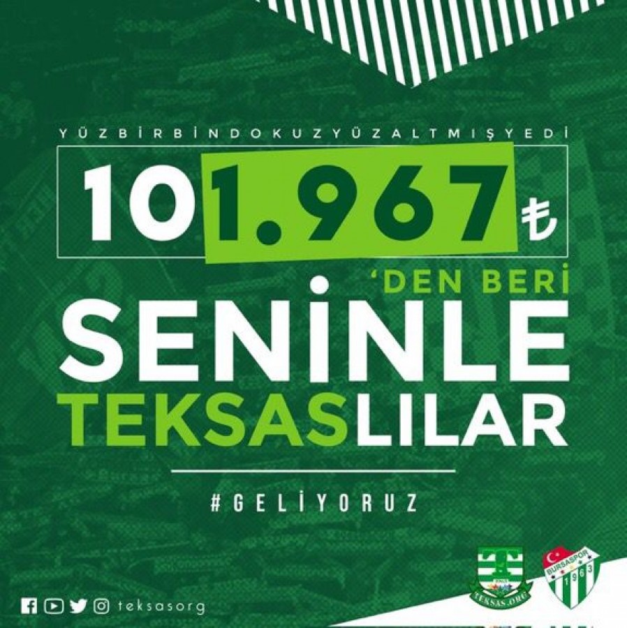 "Kulübümüzün düzenlemiş olduğu 'Ayağa Kalk Bursa' kampanyasına, Teksas olarak 101 bin 967 lira değerinde hatıra forması alarak destek olduk.