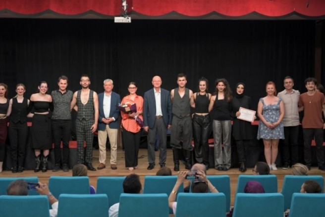 Osmangazi Belediyesi Tiyatro Okulu 2024-2025 sezonu öğrencileri tarafından hazırlanan 'Tersine Dünya' oyunu Osmangazili sanatseverlerle buluştu. Orhan Kemal'in aynı adlı romanından sahneye taşınan oyunda erkek ve kadının toplumsal rolleri değiştirilerek cinsel kimlikler üzerindeki sosyal aksaklıklar, toplumsal baskının açtığı arızalar ele alınıyor. Kadın ve erkek rollerini ironik ve eğlenceli bir üslupla tersine çevirerek, gündelik ilişkilerden namus kavramına kadar birçok konuda izleyiciyi cinsiyetler üzerine ezberleriyle yüzleştiren Tersine Dünya, geniş bir izleyici kitlesi tarafından beğeniyle karşılandı. Işık Öğütçü tarafından uyarlanan, Kübra Tüzgün tarafından yönetilen oyunda Ali Zırtlan, Baha Güllübay, Çağla Yıldırım, Demet Ergen, Elif Coşkun, Nida Nur Topçular, Sıla Çelik ve Yağmur Özer rol aldı. Performansıyla göz dolduran ekip, oyun bitiminde, salonu dolduran kalabalık tarafından ayakta alkışlandı.