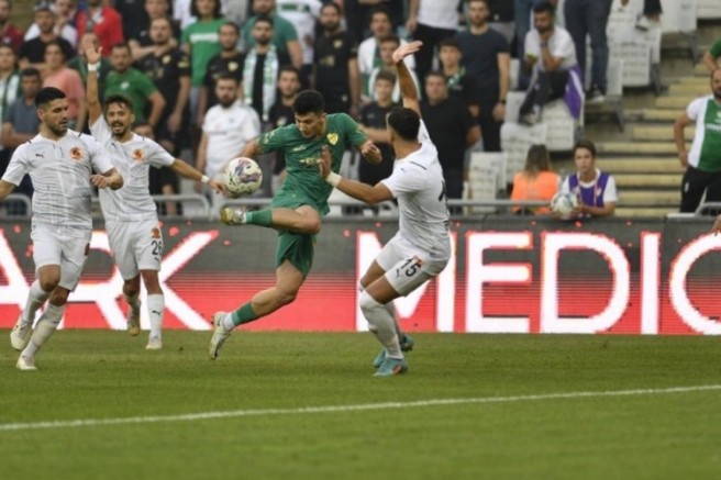 Mücadelenin ilk yarısında sakatlanan Bursasporlu Eren Güler maçı tamamlayamazken, yerine Mustafa Genç oyuna dahil oldu.