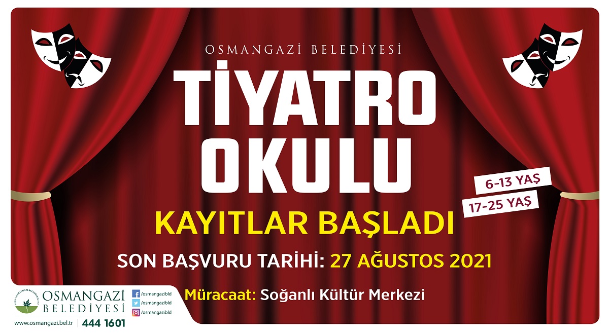 Bursa'nın Osmangazi Belediyesi, pandemi nedeniyle bir süredir ara verdiği Tiyatro Okulu’na 4 Eylül Cumartesi günü yeniden başlayacak. Sahne tozunu yutmak isteyen tiyatro tutkunları, Soğanlı Kültür Merkezi’nde buluşacak. Bursa Devlet Tiyatro Oyuncusu Kübra Tüzgün eğitmenliğinde gerçekleşecek okul ile tiyatro dünyası yeni yetenekler kazanacak.