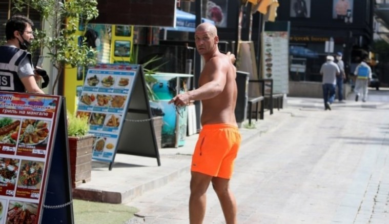 Yaklaşık 500 metre yürüyüp cep telefonu ile yaşananları görüntüleyen turisti, polisler de telefonları ile görüntüledi. Dmitrijs Solovjovs, haber verilmesi üzerine gelen asayiş ekibine bacağındaki izi göstererek, polislerin kendisini köpeğe ısırttığını öne sürdü. Polis aracına binmeden önce kendisine uzatılan maskeyi de takmayan Dmitrijs Solovjovs, araç içerisinde polisin ısrarı üzerine maskeyi taktı ancak çenesinin altında tuttu. Dmitrijs Solovjovs, ardından polis merkezine götürüldü.