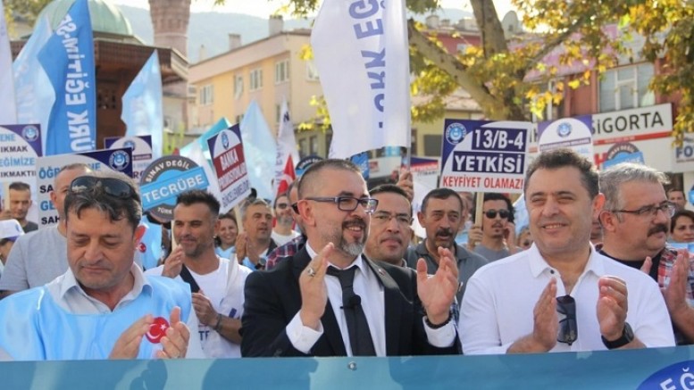 Türk Eğitim Sen Bursa 2 No’lu Şube Başkanı Fatih Gümüş, Milli Eğitim çalışanları için yapılan ‘Banka Promosyon’ anlaşmasında ilçeler arasındaki uçuruma sert tepki gösterirken, “Bursa’nın komşu ilçelerinde 10’ar bin liralık promosyon fark mı olur! Bu ilçeler Patagonya Cumhuriyeti’nemi bağlı da bizim haberimiz yok!” dedi. Türk Eğitim Sen Bursa Şube Başkanları oluşan enflasyon farkının memur maaşlarının erittiğine işaret eden 3 Nolu Şube Başkanı Ömer Işıkoğlu; “Verilen sabit ücret bile kirayı ödeyemezken bizlerden bir nesle eğitim vermemiz bekleniyor. Biz tüm zorluklara rağmen tüm şartları zorlayarak vazifemizin başındayız.” dedi.