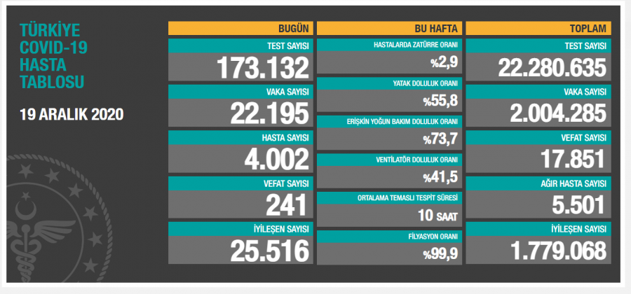 Sağlık Bakanlığı'nın internet sitesinde yer alan "Türkiye Günlük Koronavirüs Tablosu"nun güncel verileri paylaşıldı.
