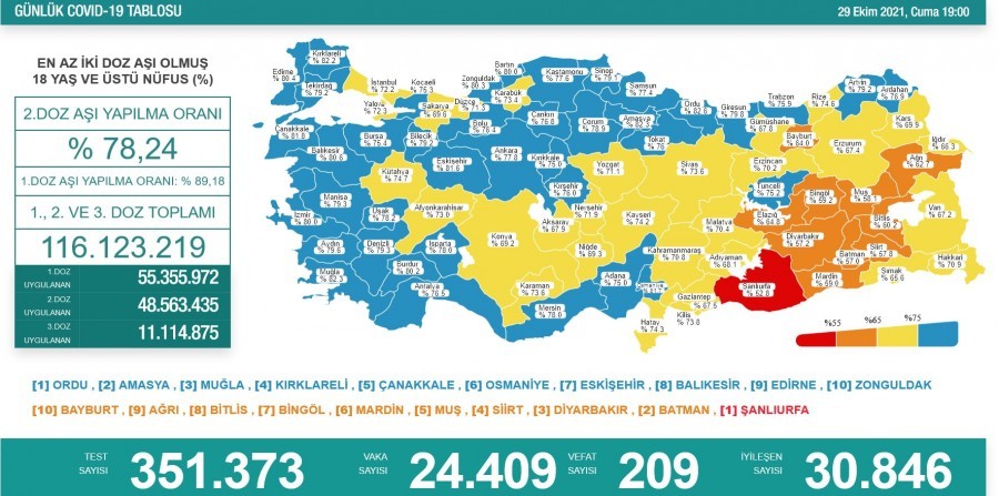 Sağlık Bakanlığı'nın internet sitesinde yer alan "Türkiye Günlük Koronavirüs Tablosu"nun güncel verileri paylaşıldı.