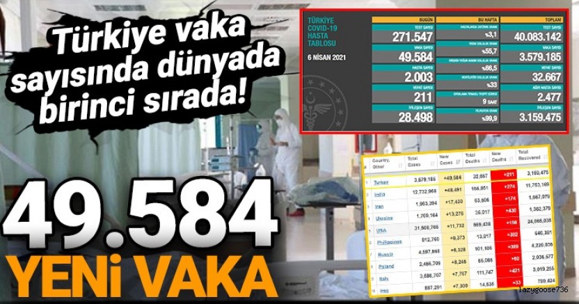 Türkiye 50 bine yaklaşan günlük vaka sayısı ile dünyada en çok vaka görülen ülke oldu.