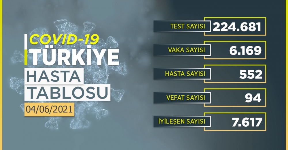 Türkiye'de son 24 saatte 224 bin 681 Kovid-19 testi yapıldı, 6 bin 169 kişinin testi pozitif çıktı, 94 kişi hayatını kaybetti.