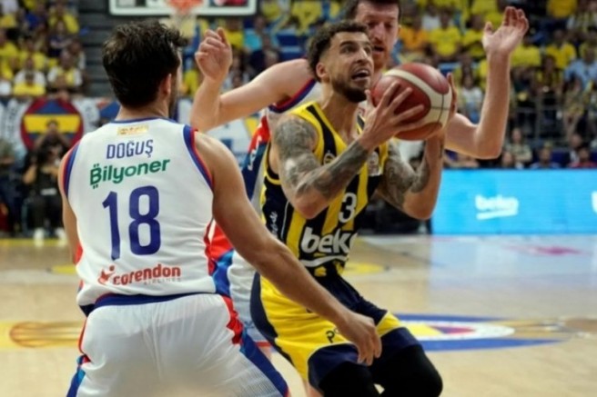 Türkiye Sigorta Basketbol Süper Ligi Play-Off Final Serisi dördüncü maçında Fenerbahçe Beko, Ülker Spor ve Etkinlik Salonu'nda A. Efes ile karşı karşıya geldi. Ev sahibi müsabakaya, Nick Calathes, Scottie Wilbekin, Dyshawn Pierre, Nigel Hayes-Davis ve Sertaç Şanlı beşiyle başladı. A. Efes ise Shane Larkin, Rıdvan Öncel, Elijah Bryant, Derek Willis, Daniel Oturu beşiyle parkeye çıktı. Sarı-lacivertliler Dyshawn Pierre ve Wilbekin ile üst üste 3 sayılık basketleriyle maça başladı. A. Efes, hücumlardan boş dönerken Sertaç Şanlı'nın serbest atıştan bulduğu sayılarla ev sahibi 11-0'lık seri yakaladı. Lacivert-beyazlıların pota altından bulduğu sayılara Papagiannis üst üste iki smaçla karşılık verdi ve 3 dakika 10 saniye kala skor 15-6'ya geldi. Fenerbahçe'de kaptan Melih Mahmutoğlu, iki sayılık basketle farkı yeniden 9'a çıkardı (17-8). Müsabakada tempo artarken Tarık Biberovic'in 3 sayılık isabeti sonrası sarı-lacivertiler ilk çeyreği 22-8 önde tamamladı.