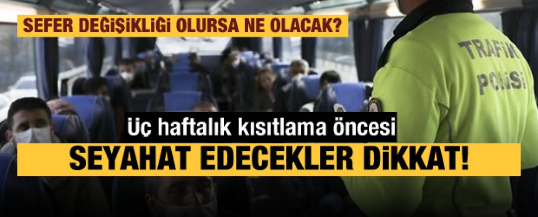 Kısıtlama döneminde seyahat yapılabilmesi için özel izin belgesi alan vatandaşlar uçak, otobüs ve özel araçlarında seyahat edebilecekler. Vatandaşlar, son dakika sefer değişiklik ve iptallerinden otomatik olarak haberdar edilmek, terminallere gidiş-dönüşlerde ceza almamak için elektronik bilet kayıtlarını ibraz edebilmek ve fiziksel teması en aza indirmek amacıyla biletlerini online kanallardan almaları öneriliyor.